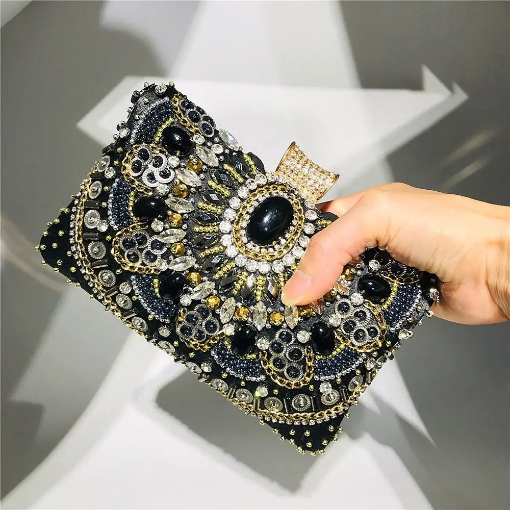 Command the night with Dark Jewel, a jewel-encrusted clutch that radiates signature elegance and mysterious allure