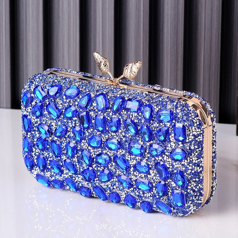 Turn every evening into a spellbinding affair with Meriselle, a radiant clutch drenched in varying blue rhinestones and crowned with a decorative metal clasp for an unmistakably regal finish.