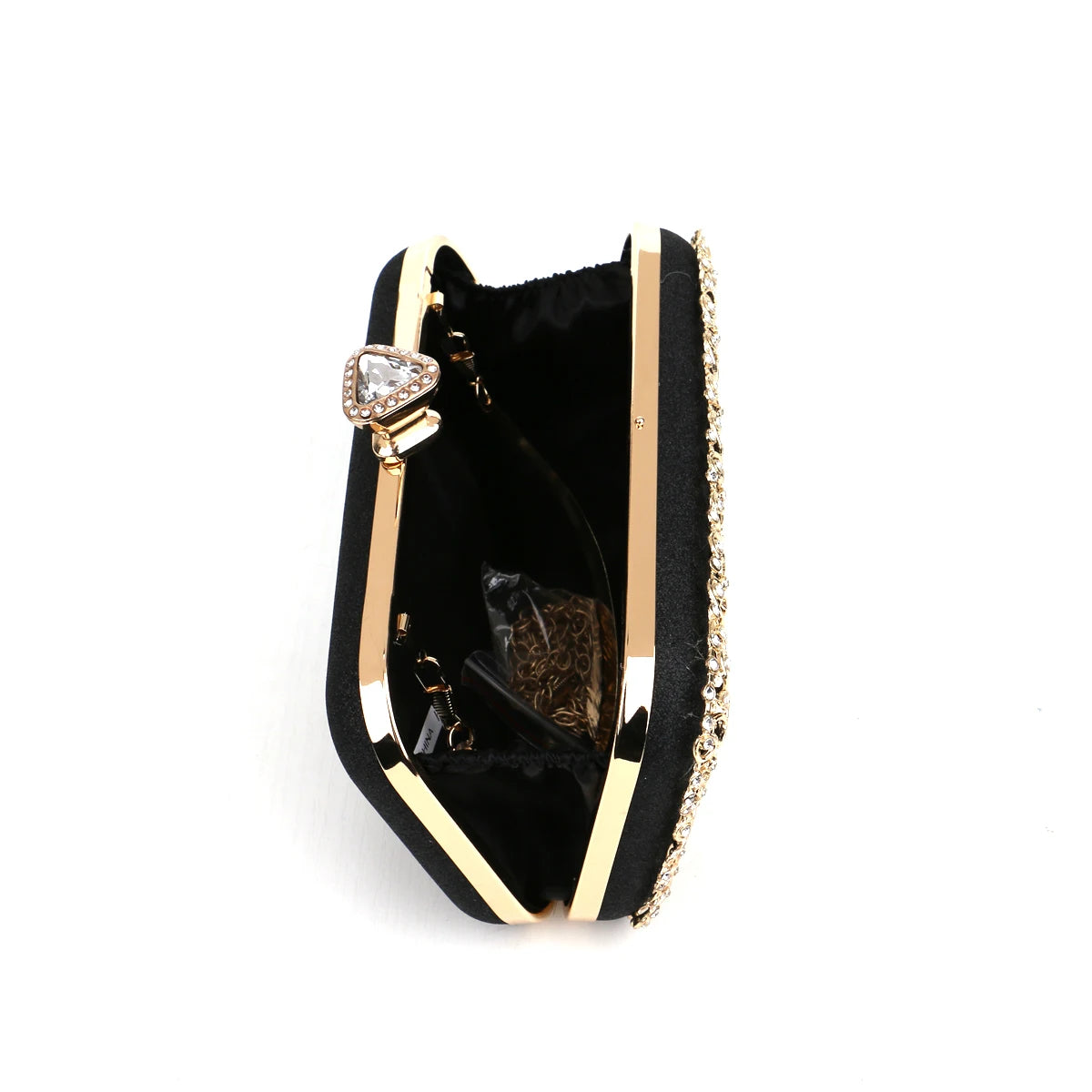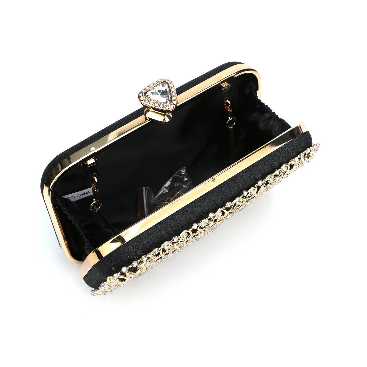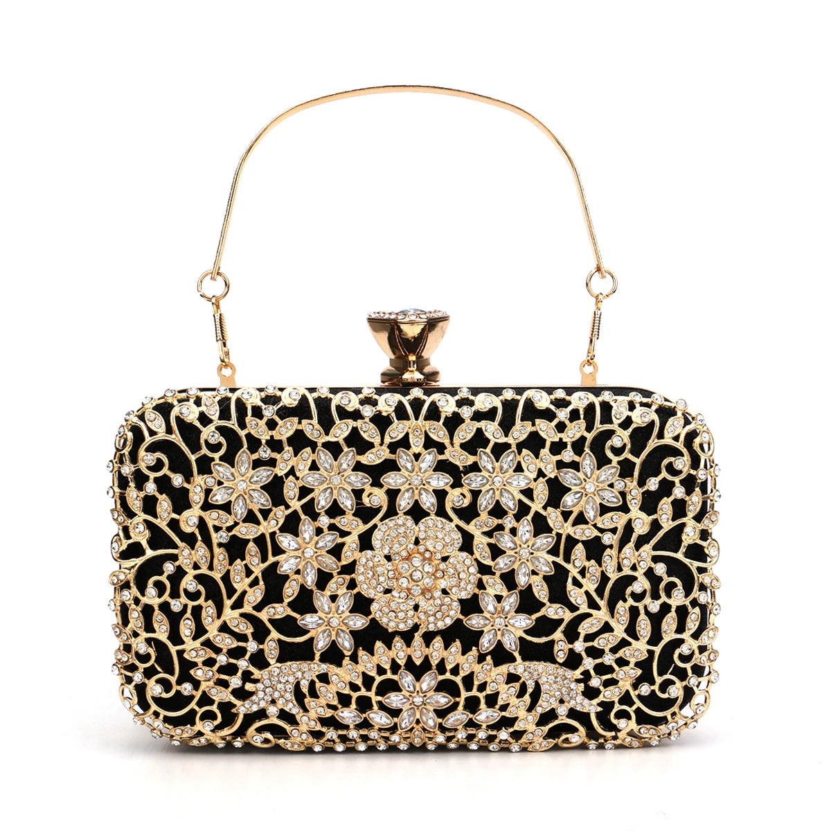 ◼️ Elegant and sculpted for stylish hand-carrying and with optional comfortable handle for all-night wear without compromising style.